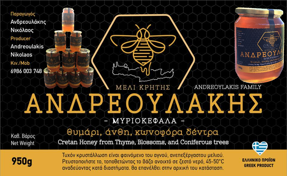 το μελισσοκόμο ΑΝΔΡΕΟΥΛΆΚΗ ΝΙΚΟ μέλι με πλούσιο κεχριμπαρένιο χρώμα και ευχάριστο άρωμα που κερδίζει μικρούς και μεγάλους, παράγεται στα ΜΥΡΙΟΚΕΦΑΛΑ ΡΕΘΥΜΝΟΥ